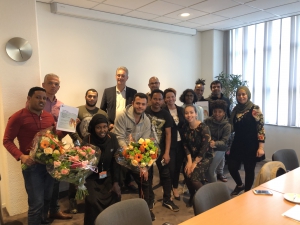 Op woensdag 1 mei hebben 8 Statushouders hun certificaat ontvangen uit handen van wethouder Hugo Janssen nadat zij met succes de opleiding hebben afgerond bij EW Facility Services.